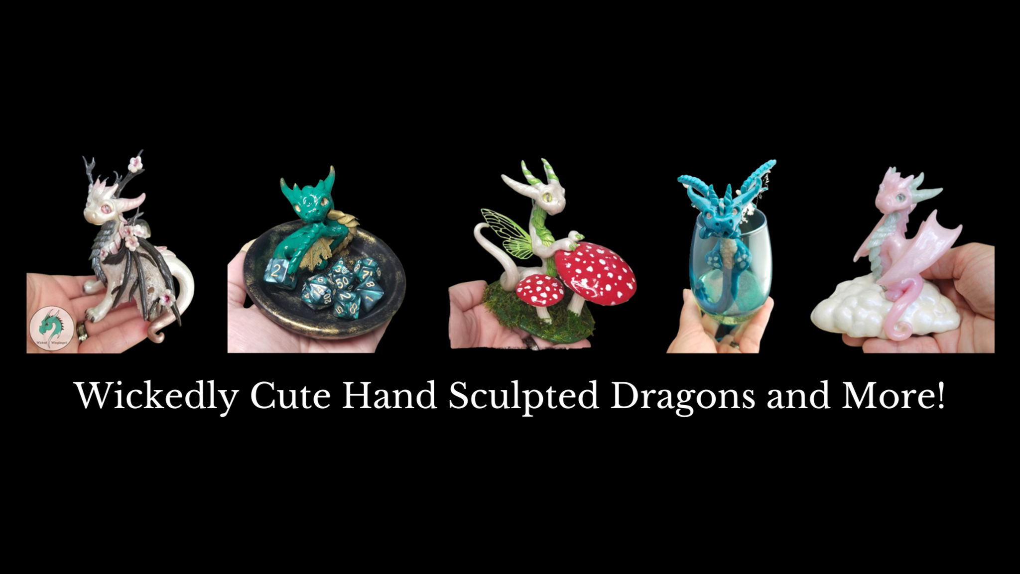Every dragon is uniquely handcrafted from polymer clay, blending charm, mischief, and magic into tiny sculptures bursting with personality.