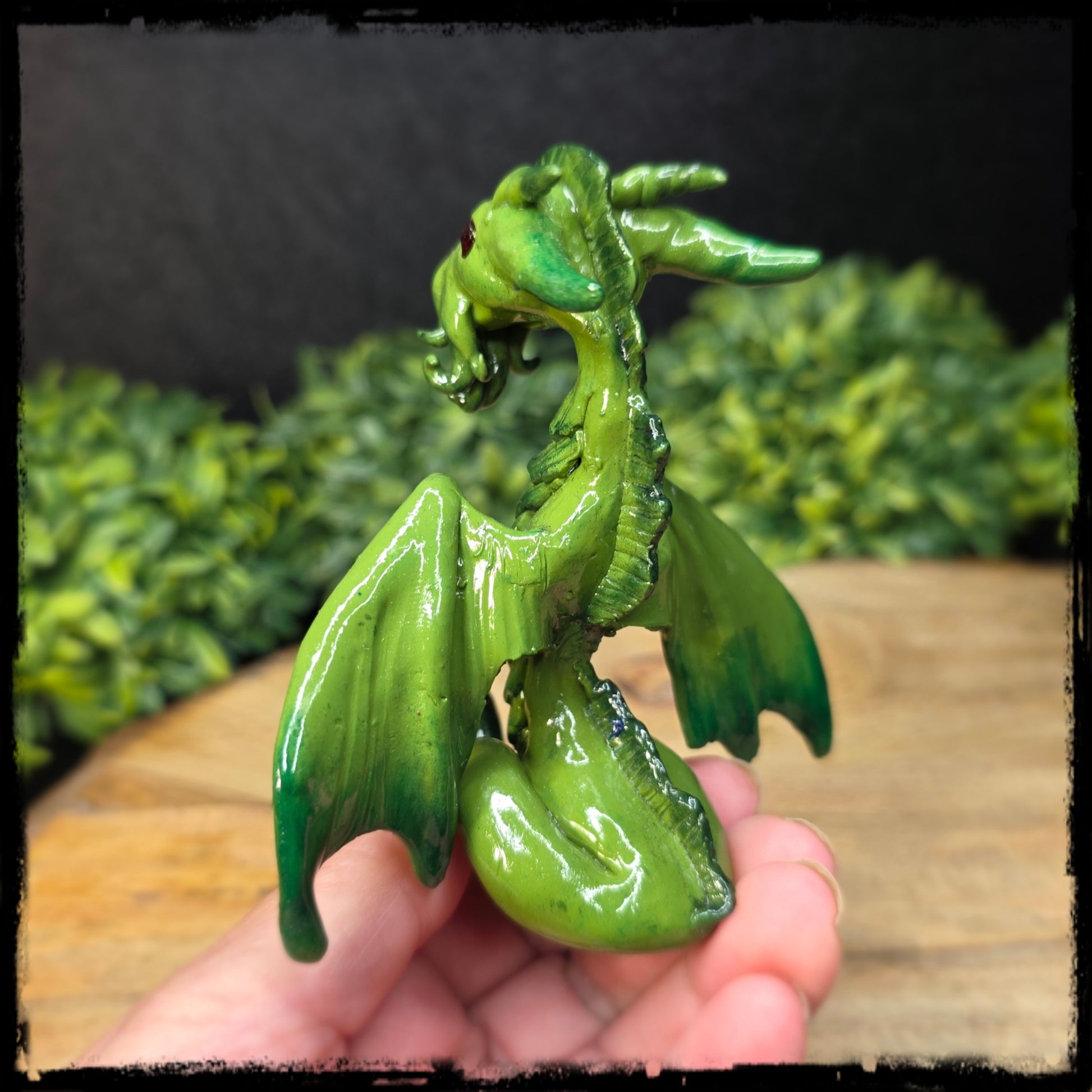 This sculpture is lovingly handcrafted from polymer clay and finished with a gloss varnish. Includes an artist signed adoption certificate of authenticity. Size of dragon is approximately 3 1/2 inches wide, and 3 3/4 inches high.