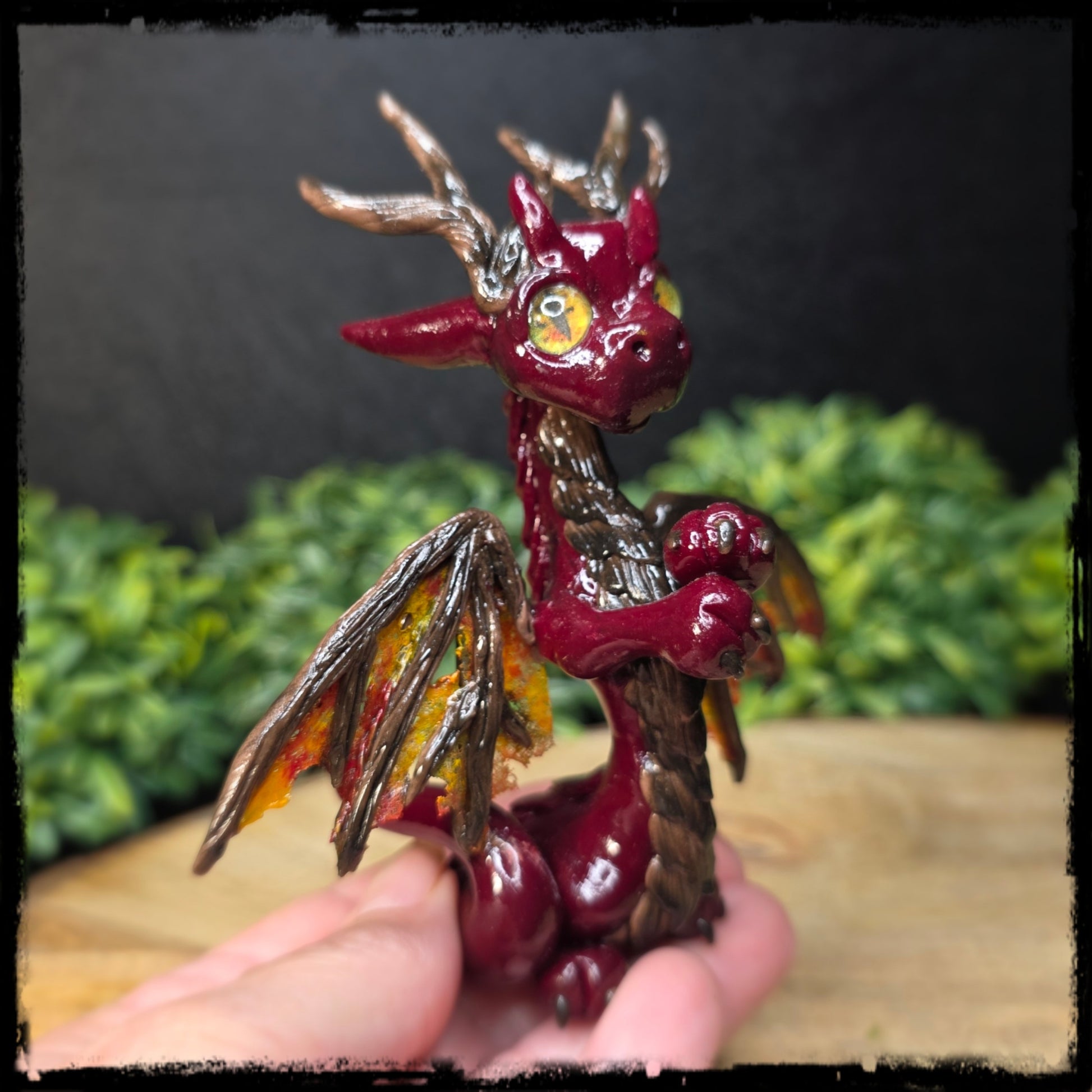 This sculpture is lovingly handcrafted from polymer clay and finished with a gloss varnish. Includes an artist signed adoption certificate of authenticity. Size of dragon is approximately 4 1/2 inches wide, and 4 1/4 inches high.